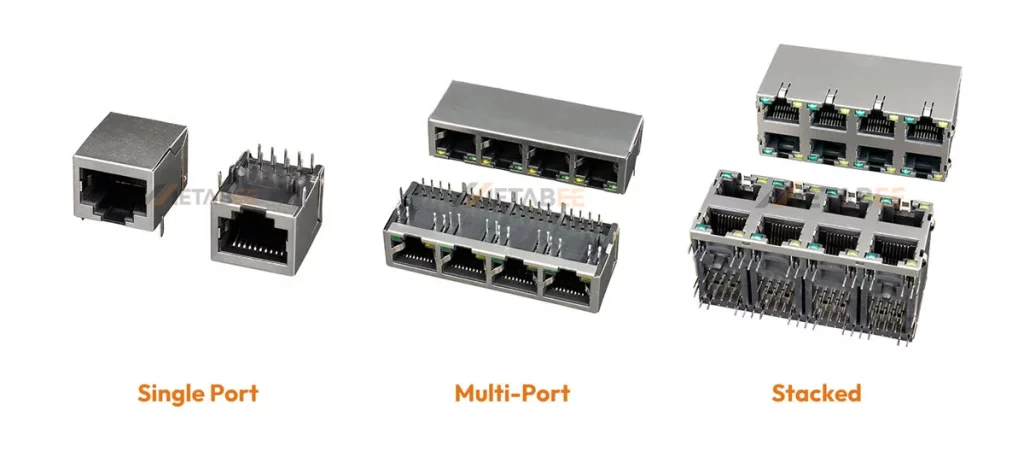 Space is premium real estate on a PCB. Manufacturers offer “Ganged” jacks to maximize port density.