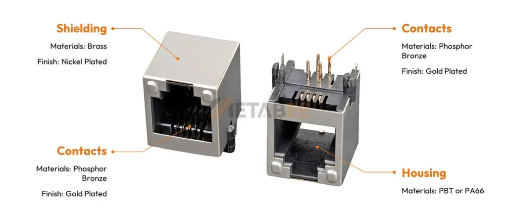 Manufacturers typically make the outer shell of an RJ45 jack from high-temperature thermoplastics.