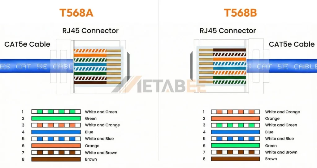 - T568B: The dominant standard in the United States and most commercial installations. If you are making a standard patch cable, you likely use this.