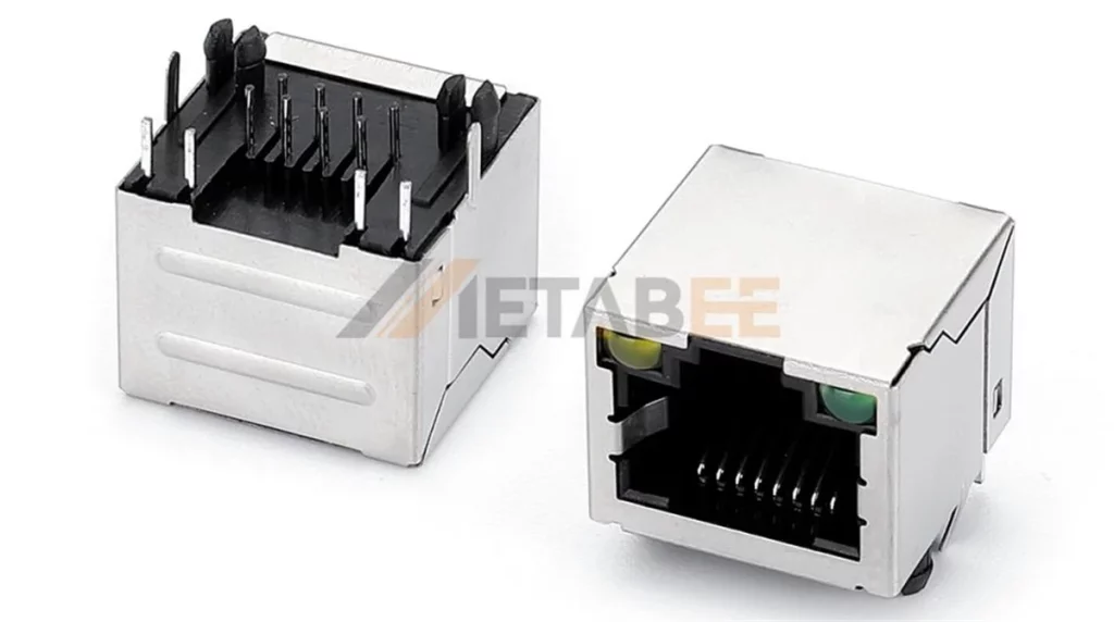 • RJ45: RJ45 ports support IEEE 802.3af/at/bt standards. By integrating precision high-voltage transformers, or integrated magnetics, these connectors deliver up to 90W to IP cameras, access points, and VoIP phones. For high-power installations, Metabee RJ45 magnetic jacks are essential to reduce signal noise and maximize power efficiency.