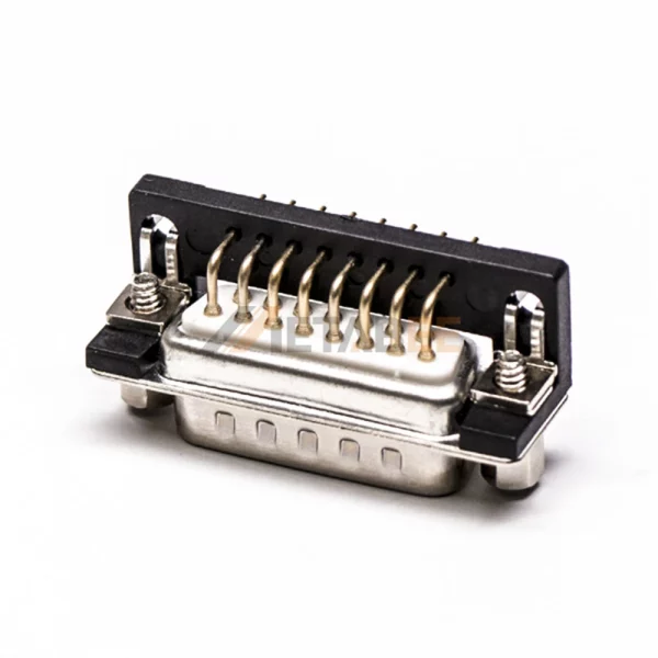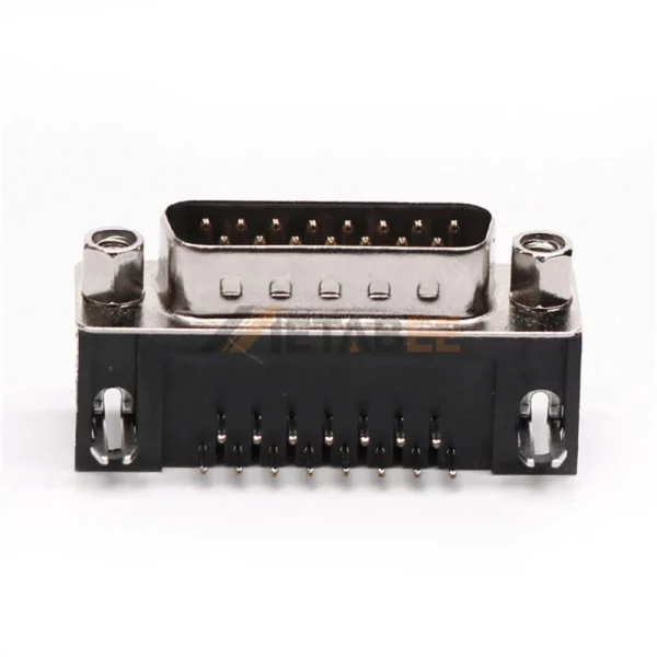 Right Angle D-Sub DB15 Male Connector for PCB Mount, 2.77mm Pitch, Front Screw Lock