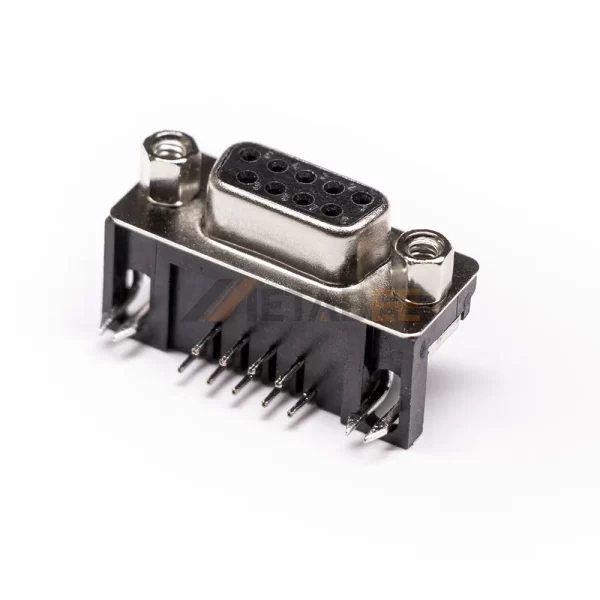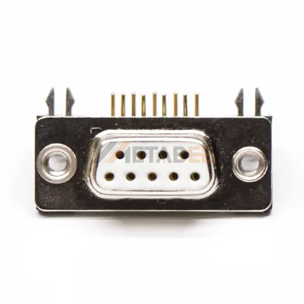 DB9 90 Degree Female Connector for PCB Mount, Through Hole, 2.77mm Pitch