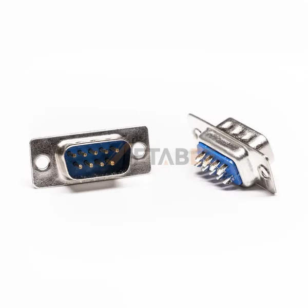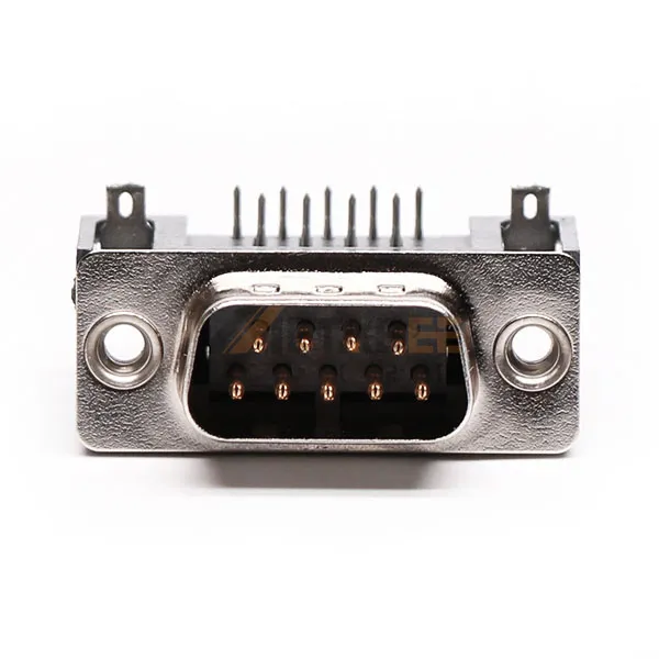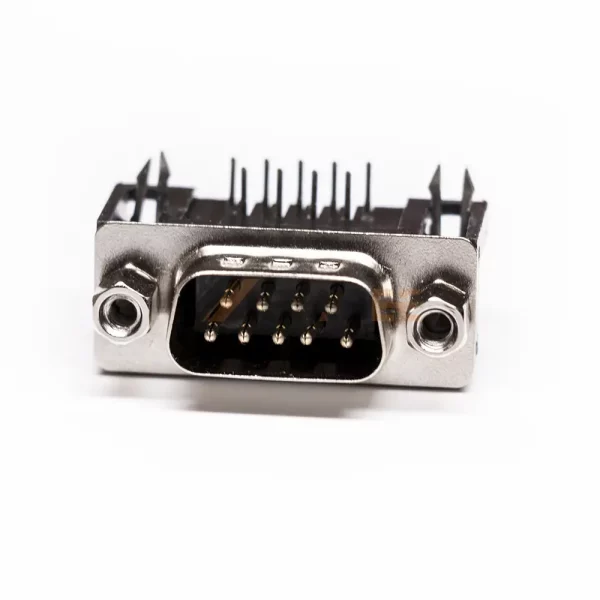 D-Sub 9 Pin Male Right Angle DB9 Connector for PCB Mount, Through Hole, 2.77mm Pitch