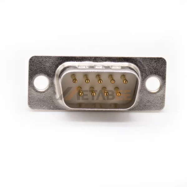 DB9 Straight Male Connector for PCB Mount, Through Hole, 2.77mm Pitch, IP20