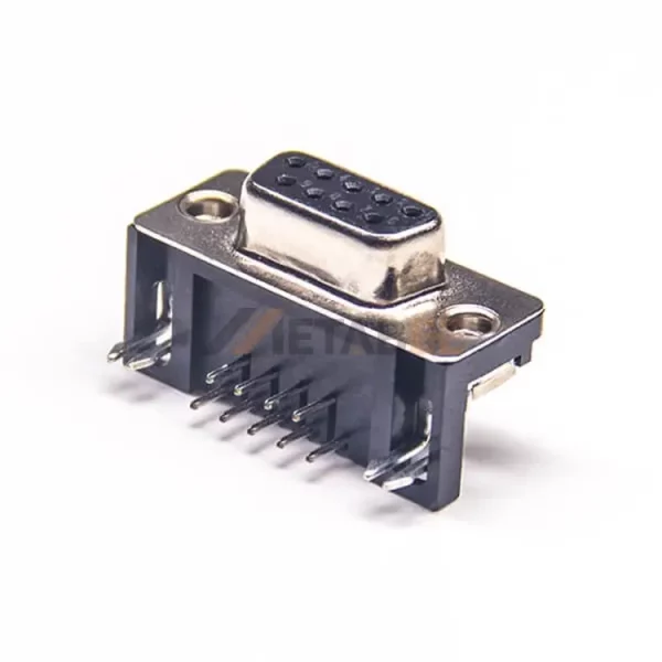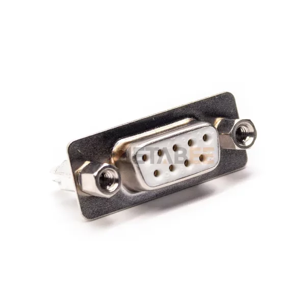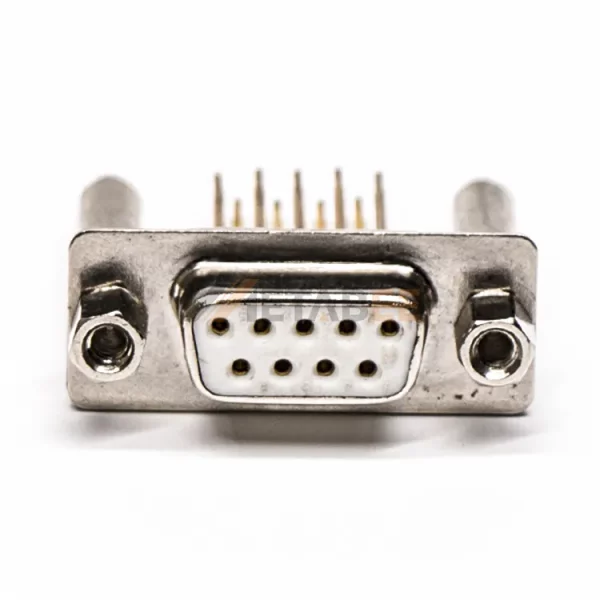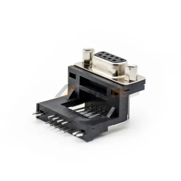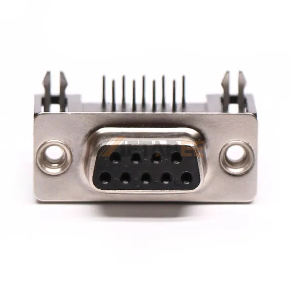 Right Angle DB9 Female Connector for PCB Mount, Through Hole, 2.77mm Pitch, IP20