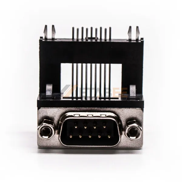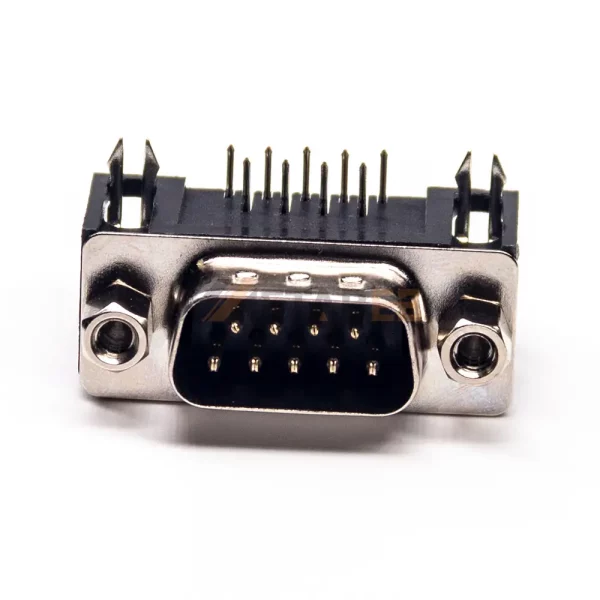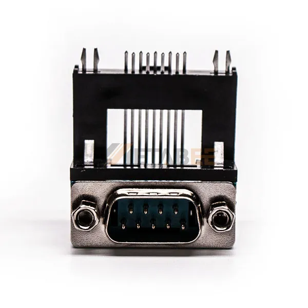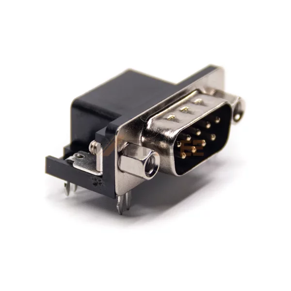DB9 Male Right Angle Connector for PCB Mount, Through Hole, 2.77mm Pitch, Front Screw Lock