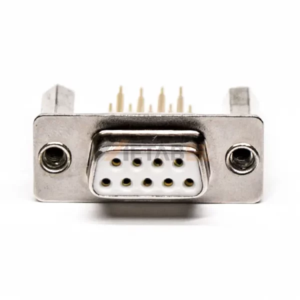 Waterproof 9 Pin D-Sub Female Connector for PCB Mount, Right Angle, Machined Contacts, 2.77mm Pitch, IP67
