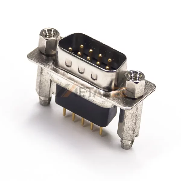 Waterproof DB9 Male Connector for PCB Mount, Right Angle, Machined Contacts, 2.77mm Pitch, IP67