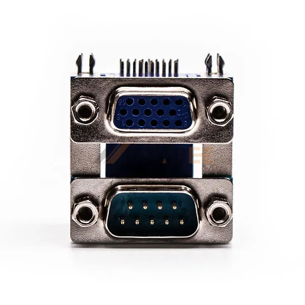 Stacked Dual Port D-Sub Connector, 15 Pin Female and 9 Pin Male, PCB Mount, Through Hole