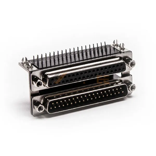 Dual Port D-Sub 37 Pin R/A Connector, Male and Female, PCB Mount, Through Hole