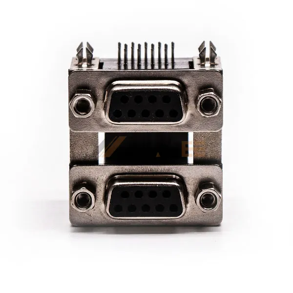 Dual-Port Stacked D-Sub 9 Pin Female Connector for PCB Mount, Through Hole