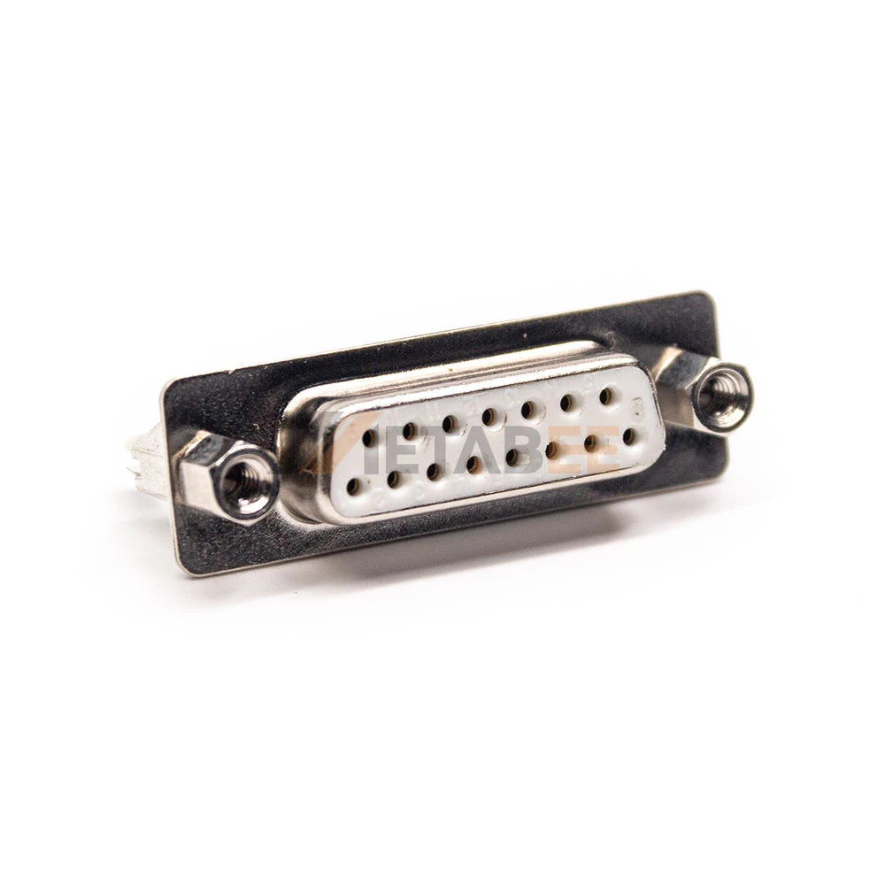15 Pin D-Sub Female Connector for PCB Mount, Through Hole, 2.77mm Pitch, Front Screw Lock