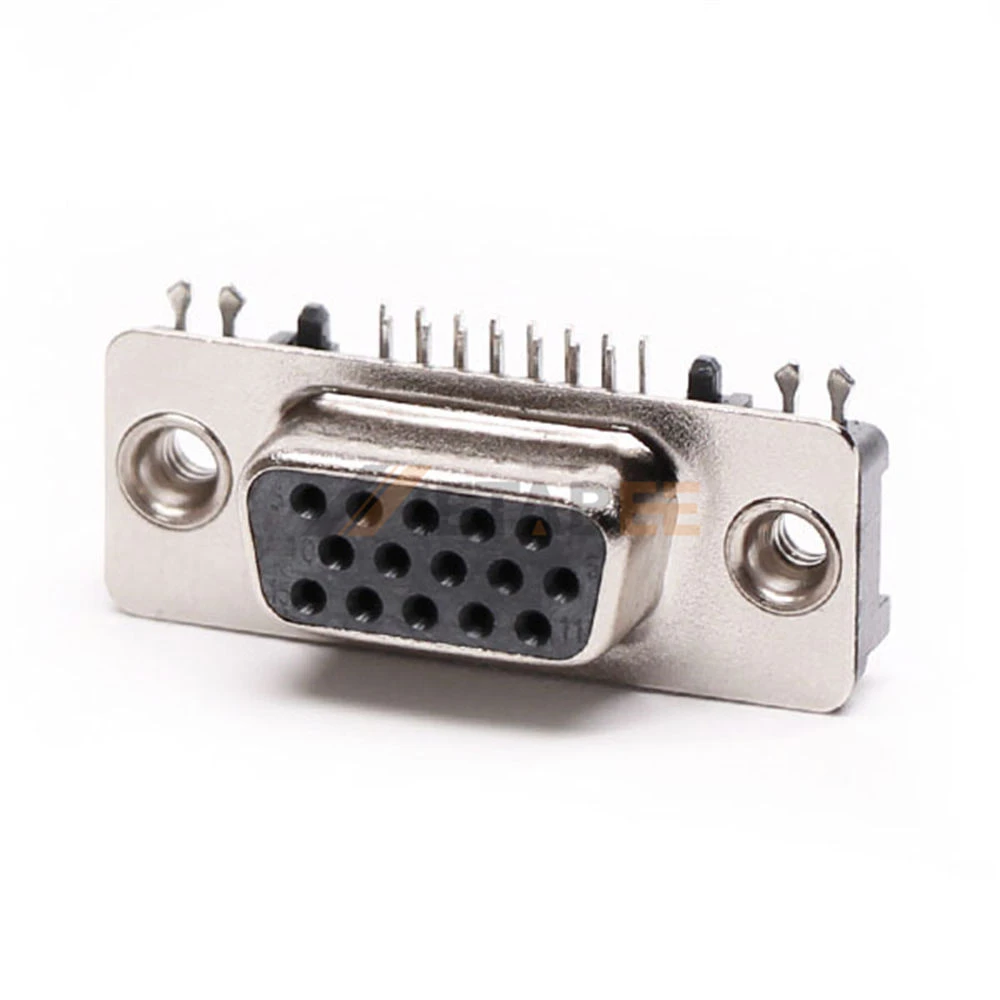 15 Pin D-Sub VGA Female Connector for PCB Mount, Though Hole, Right Angle, 2.29mm Pitch, Rear Rivet Nut