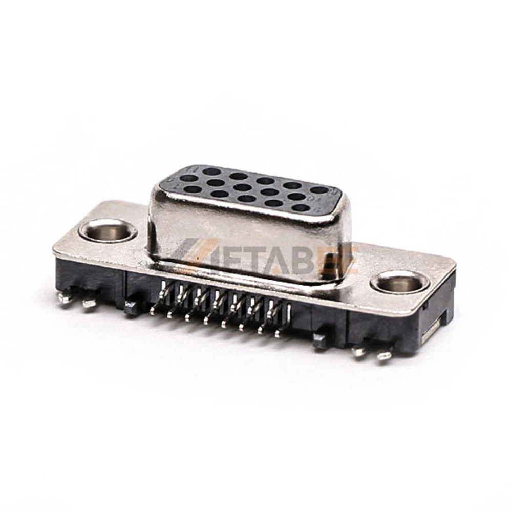This right-angle high-density D-Sub 15-pin female connector delivers maximum connectivity in minimal space. Engineered with a precision 2.29mm pitch. This compact spacing enables high-density signal transmission. Features 15 female signal contacts arranged efficiently in 3 rows. Its compact E-size shell defines the high-density standard. Designed for panel-mount PCB integration via through-hole soldering. The rear rivet nut ensures vibration-proof mating security. Contacts utilize stamped brass construction. Finished with nickel underplate. Its nickel-plated steel shell provides rugged corrosion resistance. Operates in temperatures from -25°C to +125°C. Rated for 250V and 5A current capacity. Ideal for space-constrained VGA and industrial applications demanding reliable high-density interconnects.