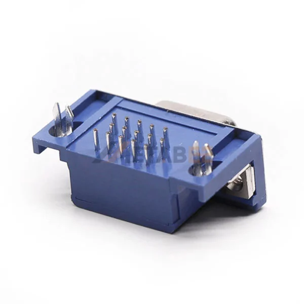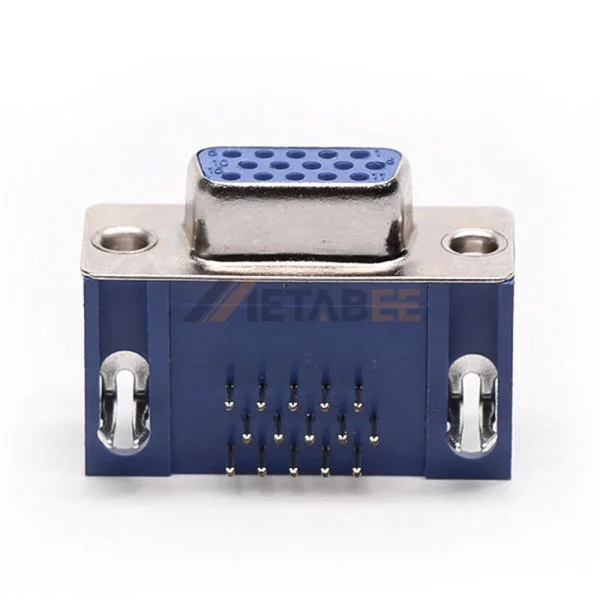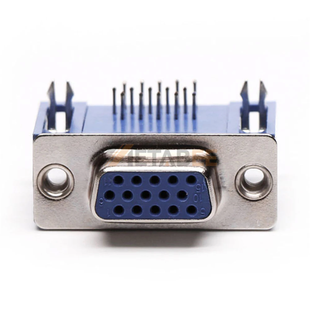 This right-angle high-density D-Sub 15-pin female connector delivers maximum connectivity in minimal space. Engineered with a precision 2.29mm pitch. This compact spacing enables high-density signal transmission. Features 15 female signal contacts arranged efficiently in 3 rows. Designed for panel-mount PCB integration via through-hole soldering. The front screw lock ensures vibration-proof mating security. Contacts utilize stamped brass construction. Finished with nickel underplate. Its nickel-plated steel shell provides rugged corrosion resistance. Operates in temperatures from -25°C to +125°C. Rated for 250V and 5A current capacity. It provides IP20 basic protection. Ideal for space-constrained VGA and industrial applications demanding reliable high-density interconnects.