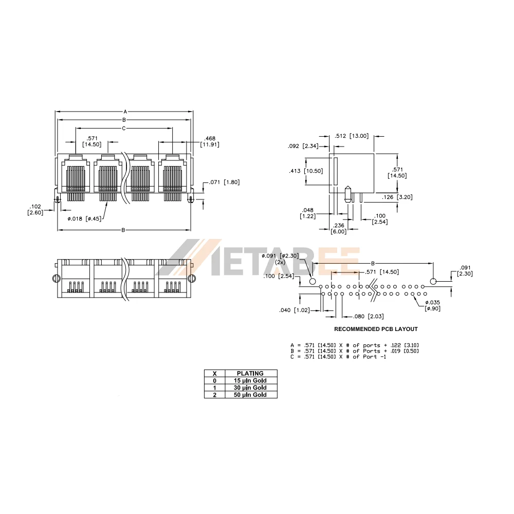- Unshielded 8P8C Design: Optimizes board space for cost-effective hubs.