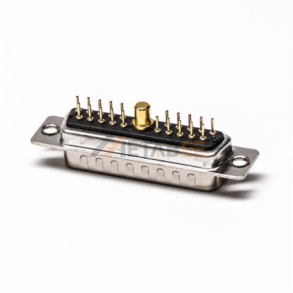 This is a 21W1 hybrid D-Sub connector with a B-size shell. The Combo D-Sub mixes both power contacts and signal contacts in the same connector. 21W1 has one power contact. The power contact can carry up to 40A, meeting device power requirements, while the signal contacts handle data transmission, achieving integrated power and signal integration. The connector utilizes high-quality, machined, gold-plated terminals, ensuring excellent conductivity and long-term reliability. Its wide operating temperature range of -55°C to 125°C and UL94 V-0 flame retardancy rating ensure excellent performance in complex industrial environments. Our complete D-sub product line and dedicated accessories enable us to provide flexible and cost-effective connectivity solutions to meet any complex application challenge.