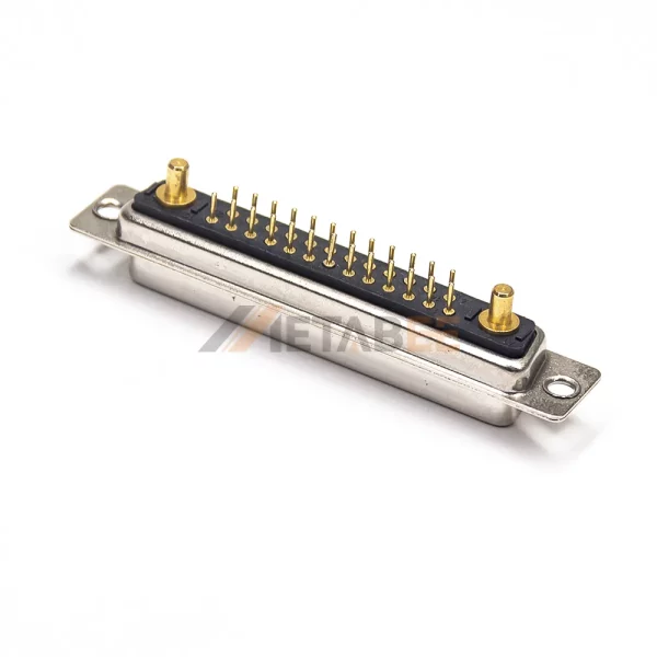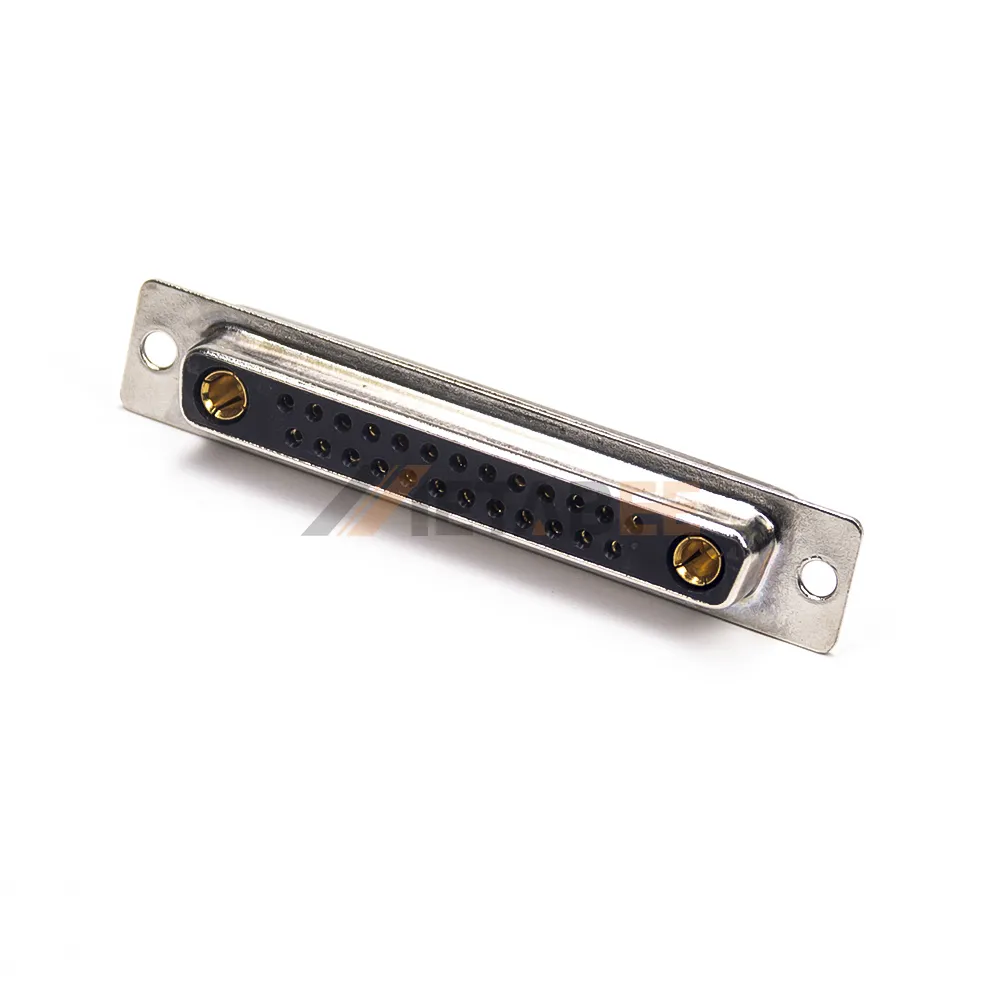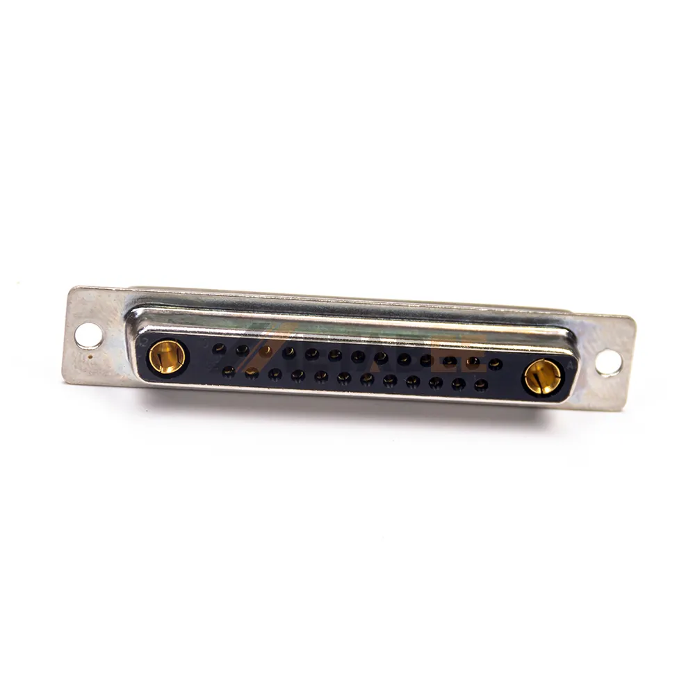 This is a 27W2 combo D-sub female connector with a C-size shell. The Combo D-Sub mixes both power contacts and signal contacts in the same connector. 27W2 has two power contacts. The power contact can carry up to 40A, meeting device power requirements, while the signal contacts handle data transmission, achieving integrated power and signal integration. The connector utilizes high-quality, machined, gold-plated terminals, ensuring excellent conductivity and long-term reliability. Its wide operating temperature range of -55°C to 125°C and UL94 V-0 flame retardancy rating ensure excellent performance in complex industrial environments. Our complete D-sub product line and dedicated accessories enable us to provide flexible and cost-effective connectivity solutions to meet any complex application challenge.