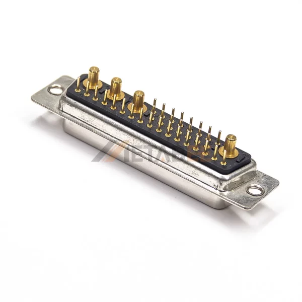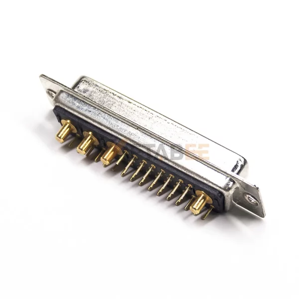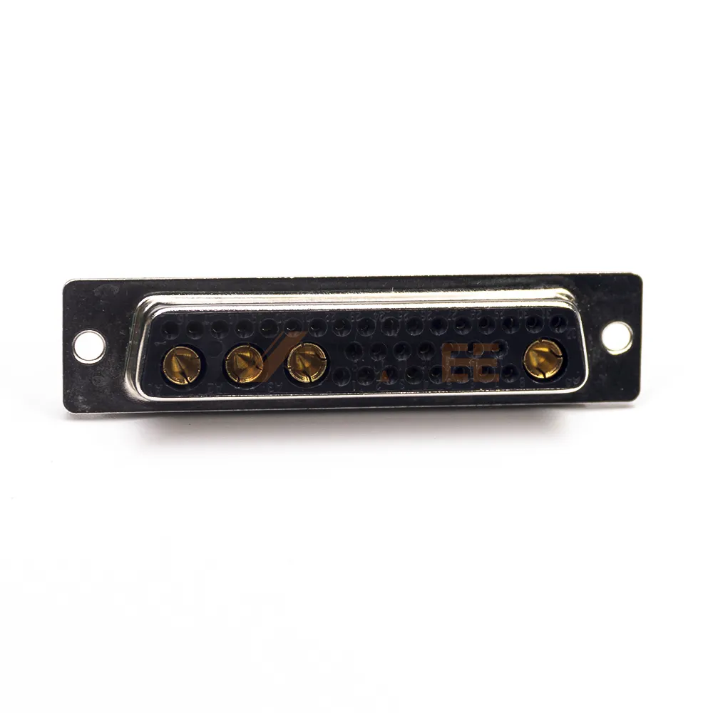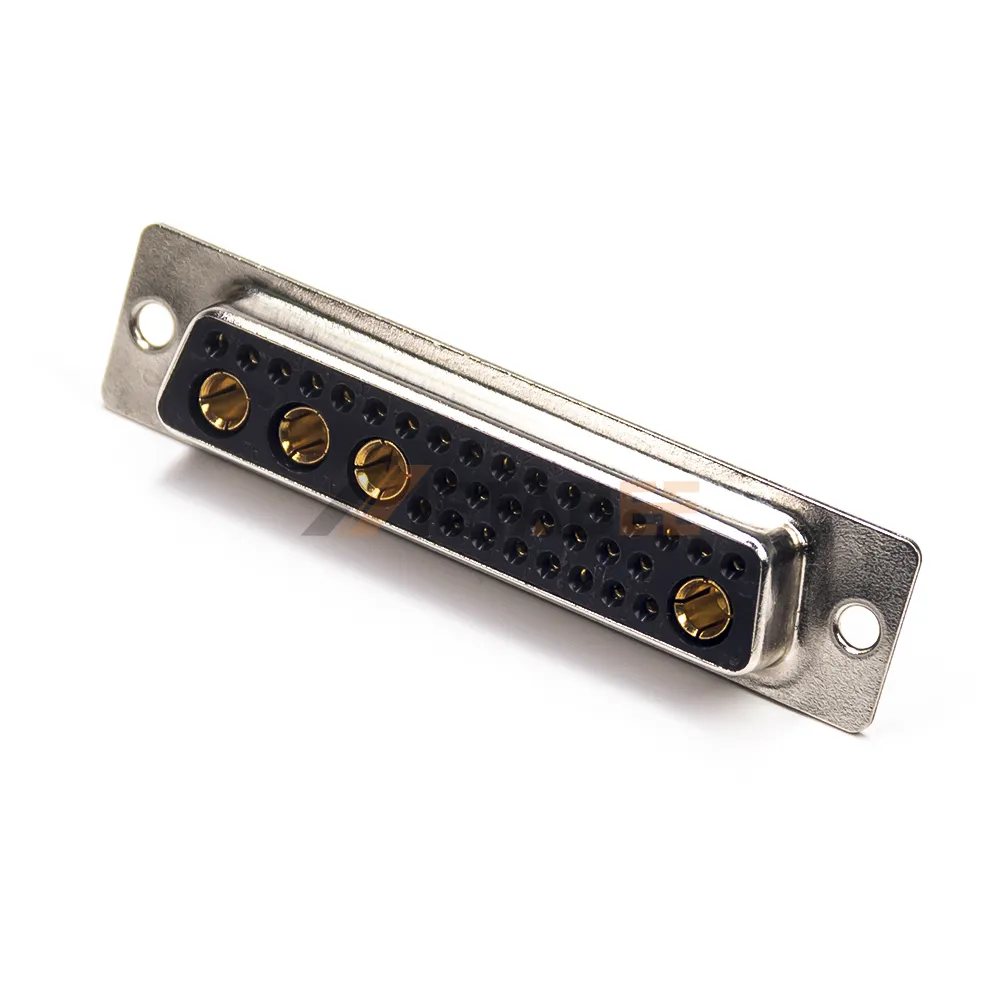 This is a 36W4 D-sub mixed contact connector with a C-size shell. The Combo D-Sub mixes both power contacts and signal contacts in the same connector. 36W4 has four power contacts. The power contact can carry up to 40A, meeting device power requirements, while the signal contacts handle data transmission, achieving integrated power and signal integration. The connector utilizes high-quality, machined, gold-plated terminals, ensuring excellent conductivity and long-term reliability. Its wide operating temperature range of -55°C to 125°C and UL94 V-0 flame retardancy rating ensure excellent performance in complex industrial environments. Our complete D-sub product line and dedicated accessories enable us to provide flexible and cost-effective connectivity solutions to meet any complex application challenge.