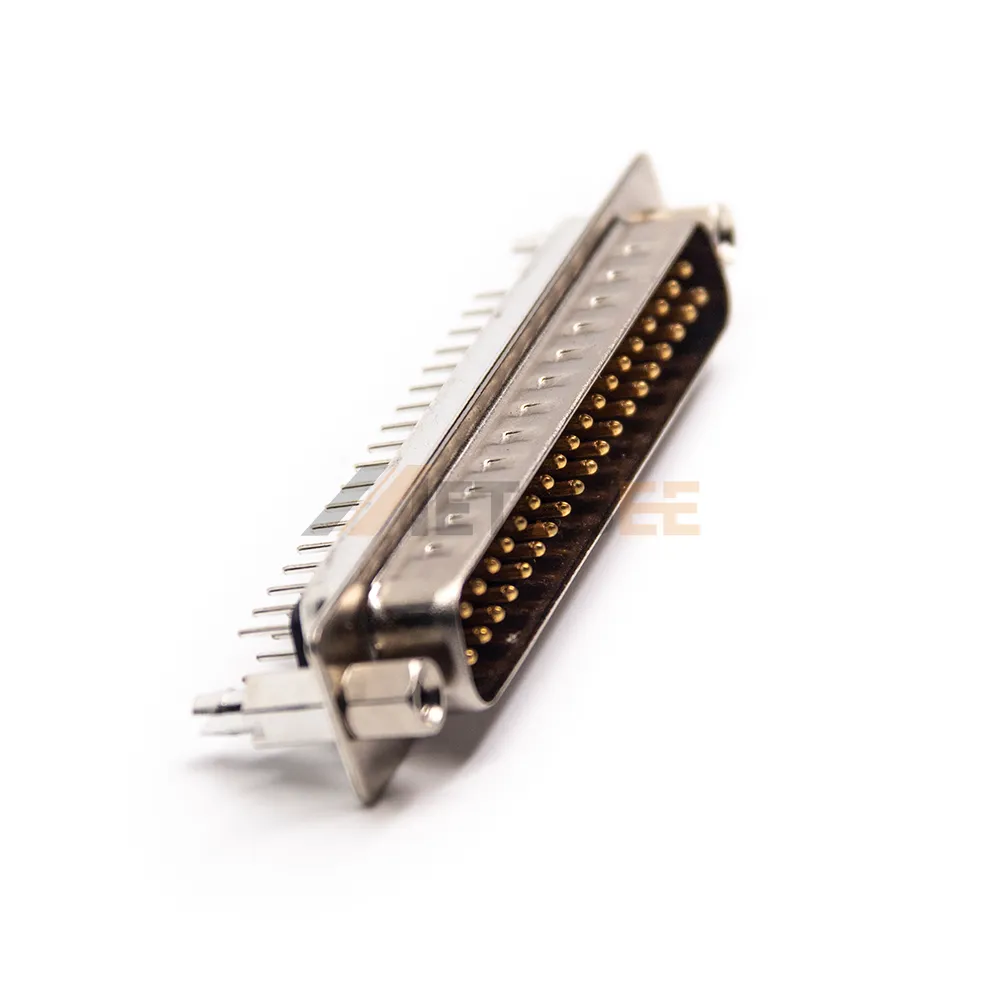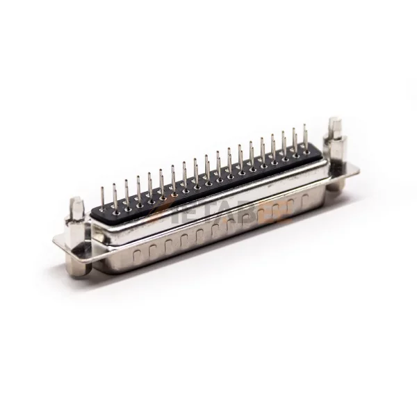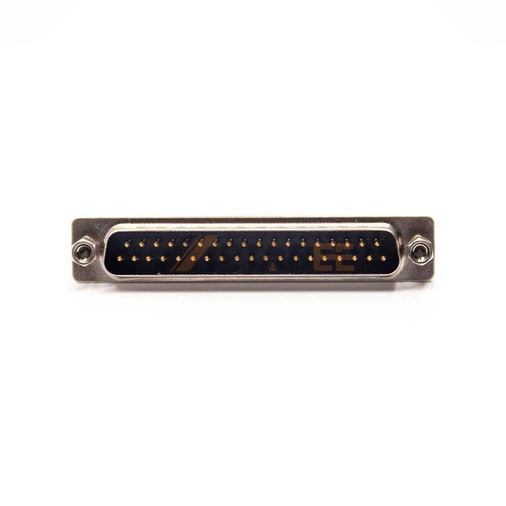 This 37 pin D-sub connector is engineered for secure PCB mounting. It uses the through-hole mounting method, creating a strong and reliable solder joint for excellent mechanical stability. Its right angle profile is ideal for space-constrained layouts. The connector mounts using through-hole technology; its solder pins are inserted into the PCB and soldered to form a robust, permanent mechanical and electrical bond. Gold-plated contacts ensure superior signal integrity, making it a high-reliability choice for industrial hardware and embedded systems.