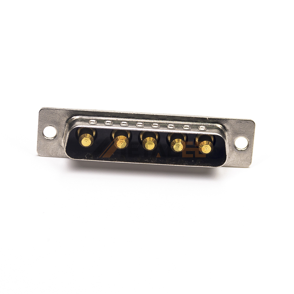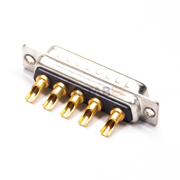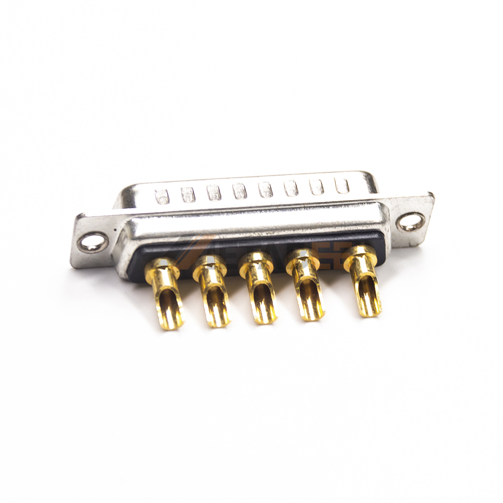 This 5W5 high current D-sub male connector is a pure power interface specifically designed for high-power applications. It integrates five machined power contacts within a standard B-size D-sub shell. Each contact is rated for up to 20A of working current, providing a stable and reliable power I/O interface for high-power equipment in compact spaces. The connector features a rugged metal shell, combined with a wide operating temperature range of -55°C to +125°C, ensuring it maintains exceptional connection integrity and electrical performance even in extreme industrial environments. Our complete D-sub product line and dedicated accessories enable us to provide flexible and cost-effective connectivity solutions to meet any complex application challenge.