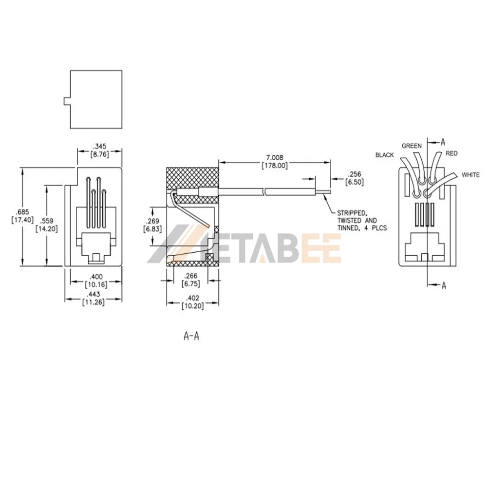 - RJ11 6P4C Configuration: Supports standard four-wire telephone and data interfaces.