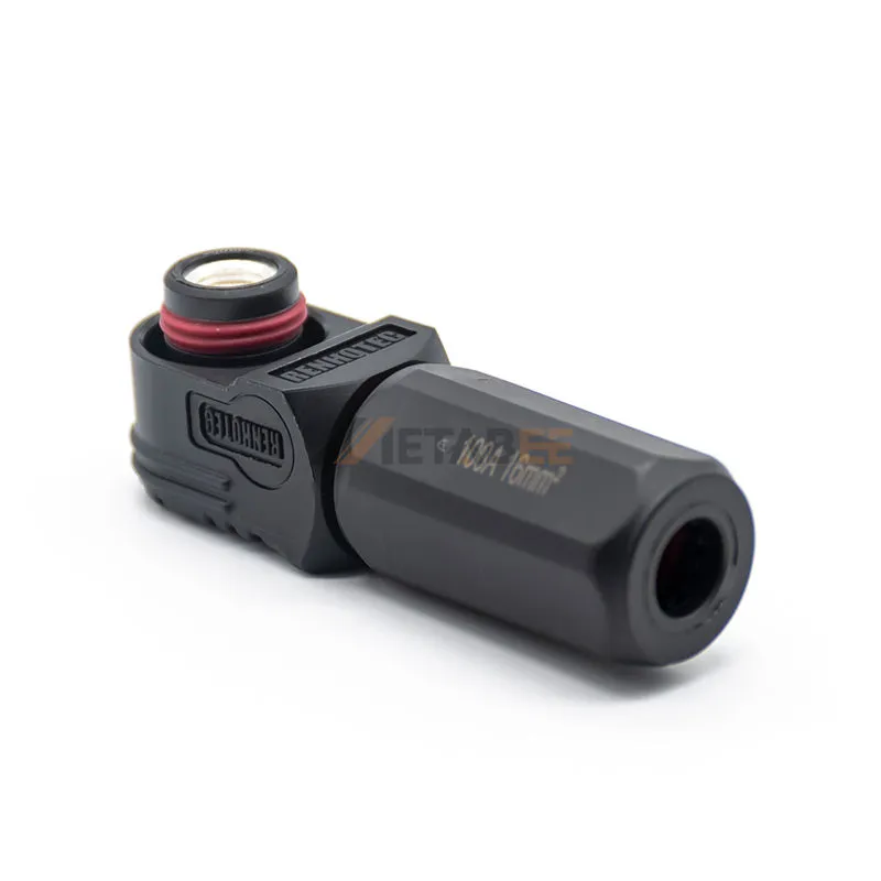 Right Angle 6mm 100A Single Core High Voltage Battery Storage Plug Connector for 16mm² Cable, Black