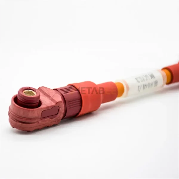 This high-performance double-ended energy storage cable is engineered for demanding battery, ESS, and high-current power distribution systems. Featuring dual right-angle 1-pin plug connectors, it ensures efficient cable routing in compact installations while maintaining secure, low-resistance connectivity. The cable utilizes robust 50mm² conductors and an 8mm terminal diameter to support a stable 200A-rated current and up to 1500V operating voltage.