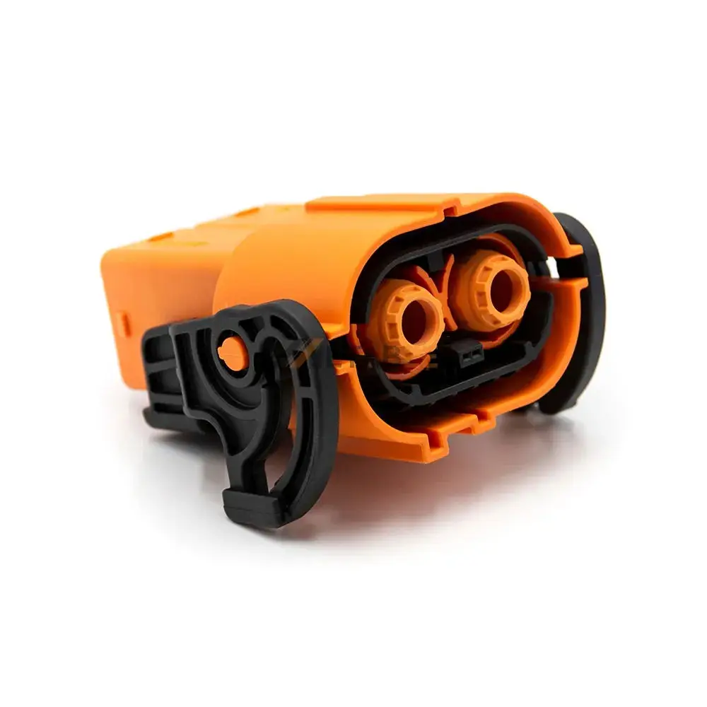 Constructed for maximum reliability under extreme conditions, the connector utilizes a rugged PA66-GF housing for superior mechanical and thermal performance. The contact components are crafted from high-conductivity Copper Alloy and finished with premium Silver Plating, ensuring minimal resistance and maximum lifespan under heavy load. Technically rated for 1500V DC and a formidable 250A, this 2-pin connector delivers exceptional power density. Its robust design is certified IP67 for protection against dust and temporary water immersion, UL94V-0 for flame retardancy, and boasts a broad operational temperature range of -40°C to 125°C, making it the definitive choice for next-generation EV power systems.