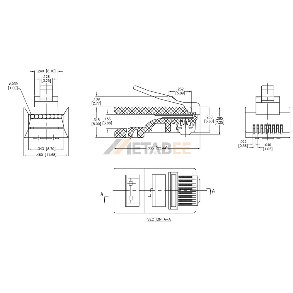 Terminating flat solid cables becomes more efficient with this 8p8c unshielded modular rj45 plug. Its specialized 3-prong contacts are engineered to provide a secure physical and electrical connection by piercing the solid copper conductors effectively. The clear PC housing allows technicians to monitor wire alignment for 24-26AWG cables before the final crimping process. With a current rating of 1.5A and 150 VAC voltage support, this connector ensures stable performance in various data networking tasks. It maintains a low contact resistance of 20 mohms to facilitate optimal signal flow through the interface. Many installers prefer this unshielded design for standard residential and commercial projects where cost-effective termination is essential.
