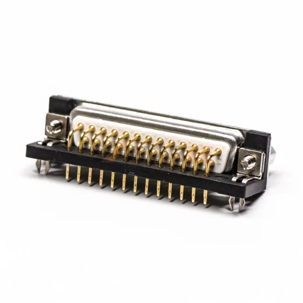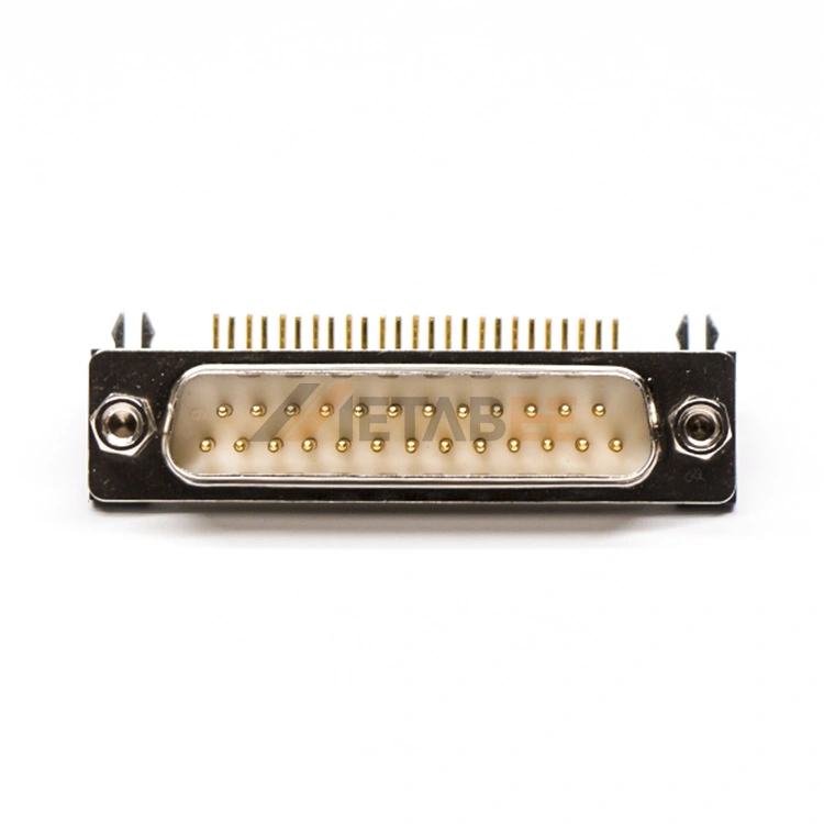 - 25-Pin Right Angle Male Connector: Offers 25 male signal contacts in a space-saving 90-degree PCB mount design.