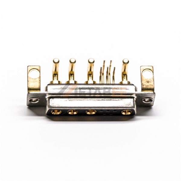 This is a 9W4 hybrid D-Sub connector with a B-size shell. The Combo D-Sub mixes both power contacts and signal contacts in the same connector. 9W4 has four power contacts. The power contact can carry up to 40A, meeting device power requirements, while the signal contacts handle data transmission, achieving integrated power and signal integration. The connector utilizes high-quality, machined, gold-plated terminals, ensuring excellent conductivity and long-term reliability. Its wide operating temperature range of -55°C to 125°C and UL94 V-0 flame retardancy rating ensure excellent performance in complex industrial environments. Our complete D-sub product line and dedicated accessories enable us to provide flexible and cost-effective connectivity solutions to meet any complex application challenge.