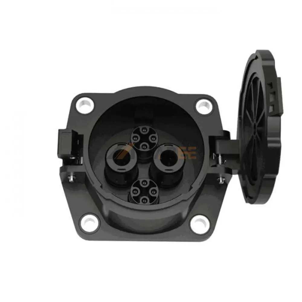 This CHAdeMO DC fast charging socket is engineered for high-performance electric vehicle charging applications requiring reliability, safety, and global compatibility. Designed in compliance with CHAdeMO standards, it supports single-phase DC charging up to 1000V and 125A, delivering a maximum charging power of 65 kW. The socket configuration ensures secure mating and stable current transmission in demanding fast-charge environments.
