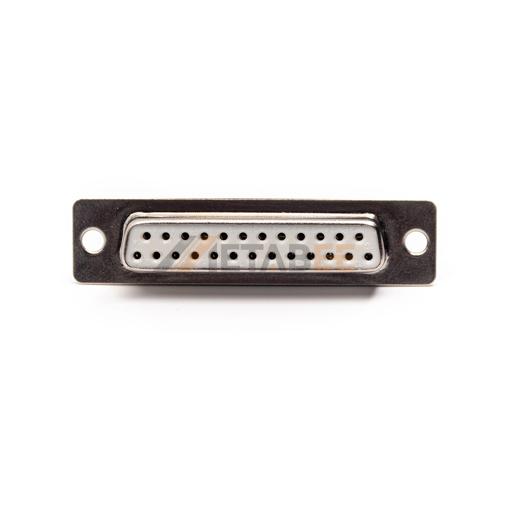 - 25-Pin Female Connector: Standard D-Sub size B shell with female signal contacts.