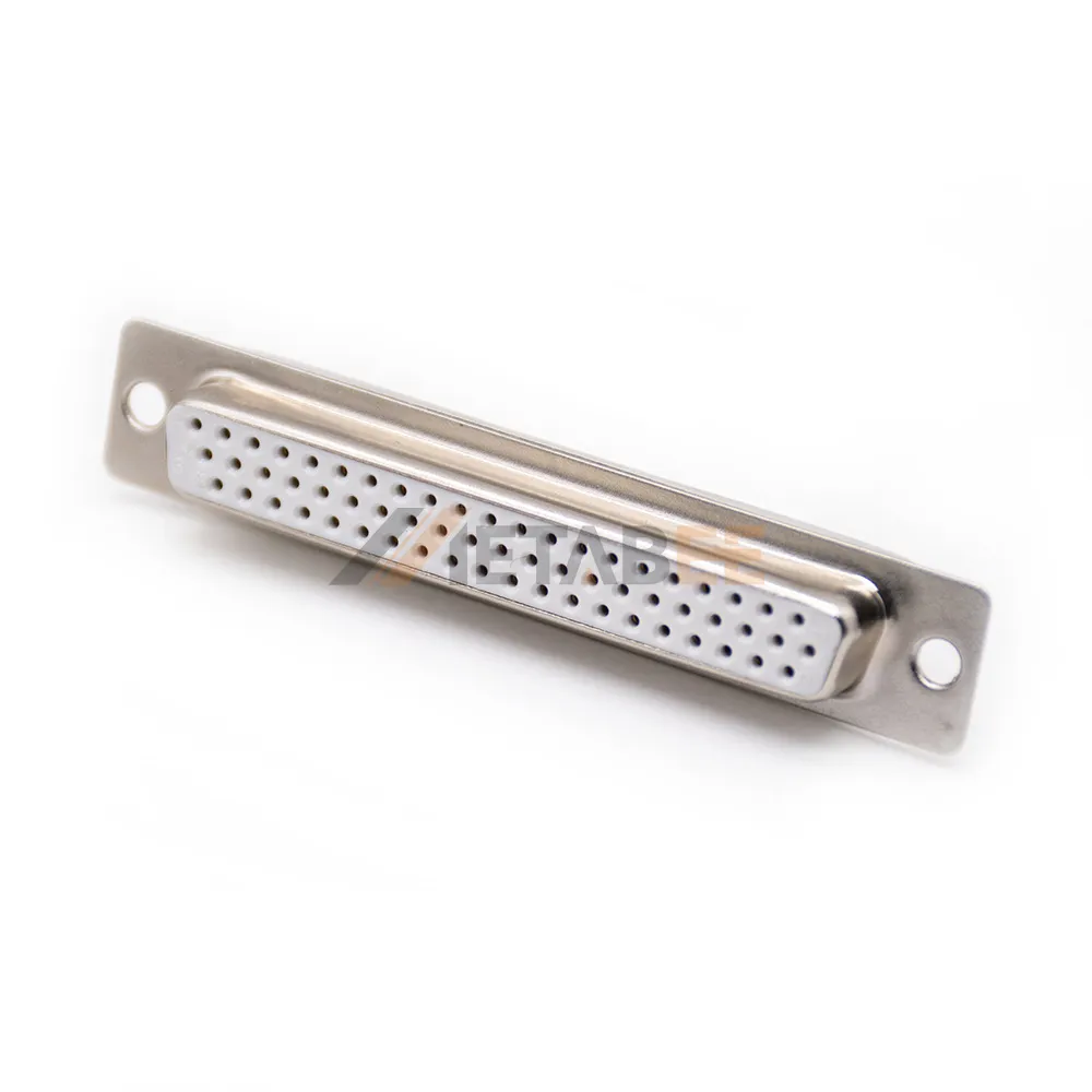 This D-sub 62 pin female connector provides a high-density solution for complex I/O applications. It is engineered for cable mounting, featuring solder cup terminals for a secure, permanent connection of individual wires. This connector is built with reliable stamped contacts, which are gold-plated to ensure good signal integrity for general-purpose applications. Its gold-plated contacts ensure excellent signal integrity. With a rugged steel shell for protection, it’s an ideal choice for medical devices, industrial control systems, and specialized data communication equipment.
