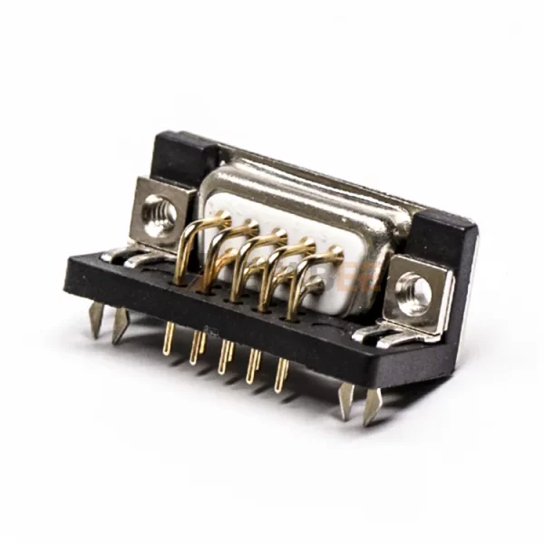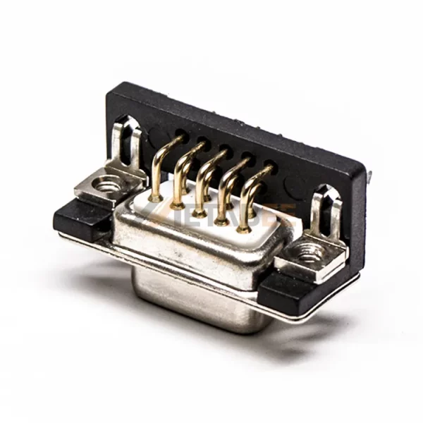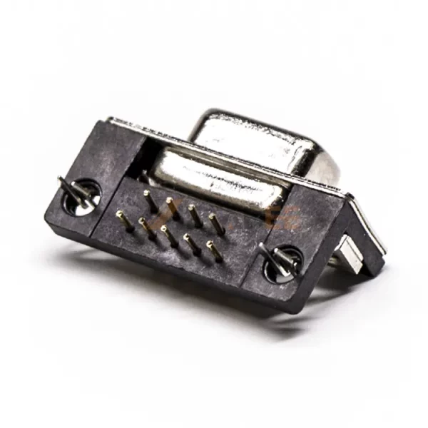 This D-sub 9 pin female right angle connector is engineered for secure PCB mounting. Its right angle profile is ideal for space-constrained layouts. This connector uses high-quality machined contacts for a flawless and durable connection. The connector mounts using through-hole technology; its solder pins are inserted into the PCB and soldered to form a robust, permanent mechanical and electrical bond. Gold-plated contacts ensure superior signal integrity, making it a high-reliability choice for industrial hardware and embedded systems.
