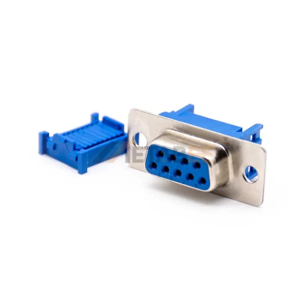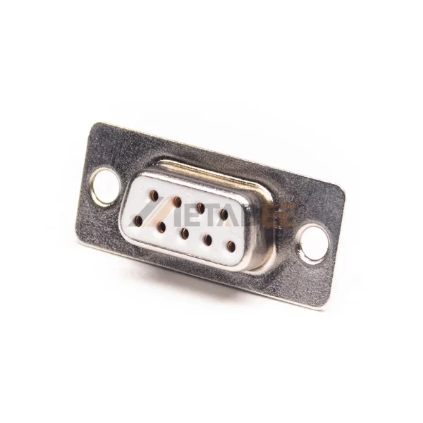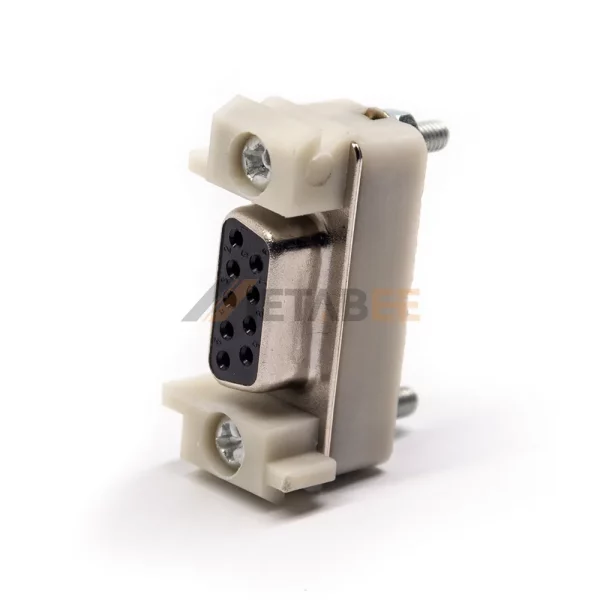 This D-sub 9 pin PCB female connector is engineered for secure PCB mounting. It features integrated 4-40 UNC screw locks, ensuring a vibration-proof mating connection. The connector mounts using through-hole technology; its solder pins are inserted into the PCB and soldered to form a robust, permanent mechanical and electrical bond. This connector features nickel-plated contacts, providing an economical solution for reliable data connections. The wide operating temperature range and UL94 V-0 flame rating ensure reliability in demanding environments. A durable steel shell provides robust physical protection, making it an excellent choice for adding a standard female serial port to electronic devices and control panels.