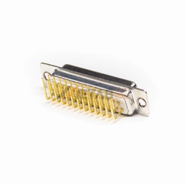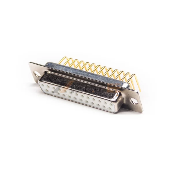 - 25-Pin Right Angle Female Connector: Offers 25 female signal contacts in a space-saving 90-degree PCB mount design.