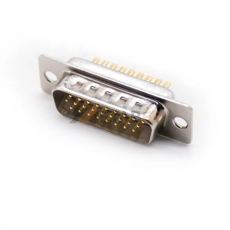 This D-sub DB26 male connector provides a high-density solution for complex I/O applications. It is engineered for cable mounting, featuring solder cup terminals for a secure, permanent connection of individual wires. This connector is built with high-quality machined contacts, offering superior durability and a more reliable connection than standard stamped types, which is critical for high pin count interfaces. Its gold-plated contacts ensure excellent signal integrity across all 26 pins. With a rugged steel shell for protection, it’s an ideal choice for medical devices, industrial control systems, and specialized data communication equipment.