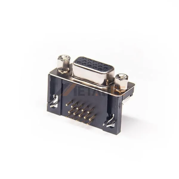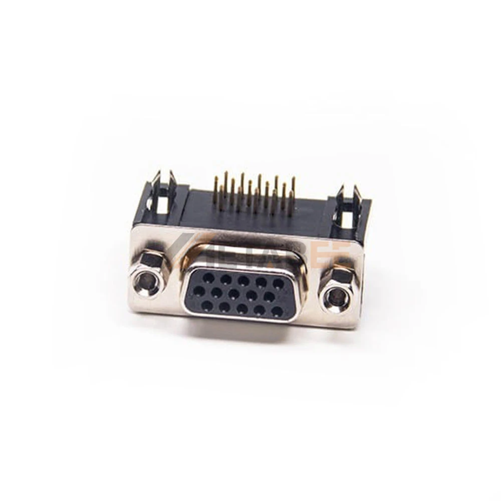 D-Sub HD 15 Pin Female Connector for PCB Mount, Through Hole, Right Angle, 2.29mm Pitch, Front Screw Lock