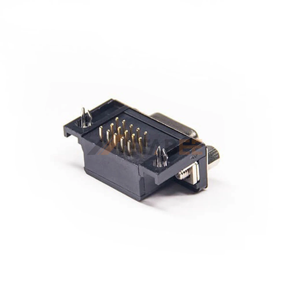 This right-angle high-density D-Sub DB15 female connector delivers maximum connectivity in minimal space. Engineered with a precision 2.29mm pitch. This compact spacing enables high-density signal transmission. Features 15 female signal contacts arranged efficiently in 3 rows. Designed for panel-mount PCB integration via through-hole soldering. The front screw lock ensures vibration-proof mating security. Contacts utilize stamped brass construction. Finished with nickel underplate and gold plating. Its nickel-plated steel shell provides rugged corrosion resistance. Operates in temperatures from -25°C to +125°C. Rated for 250V and 5A current capacity. It provides IP20 basic protection. Ideal for space-constrained VGA and industrial applications demanding reliable high-density interconnects.