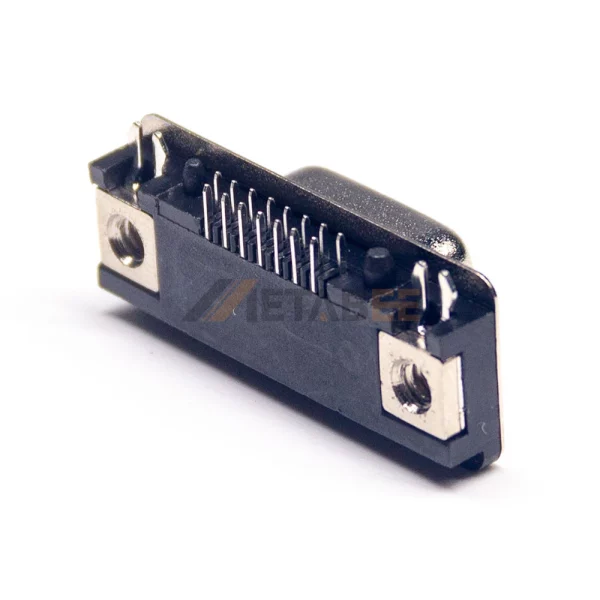 This right-angle high-density D-Sub 15-pin female connector delivers maximum connectivity in minimal space. Engineered with a precision 2.29mm pitch. This compact spacing enables high-density signal transmission. Features 15 female signal contacts arranged efficiently in 3 rows. Its compact E-size shell defines the high-density standard. Designed for panel-mount PCB integration via through-hole soldering. The rear rivet nut ensures vibration-proof mating security. Contacts utilize stamped brass construction. Finished with nickel underplate. Its nickel-plated steel shell provides rugged corrosion resistance. Operates in temperatures from -25°C to +125°C. Rated for 250V and 5A current capacity. Ideal for space-constrained VGA and industrial applications demanding reliable high-density interconnects.