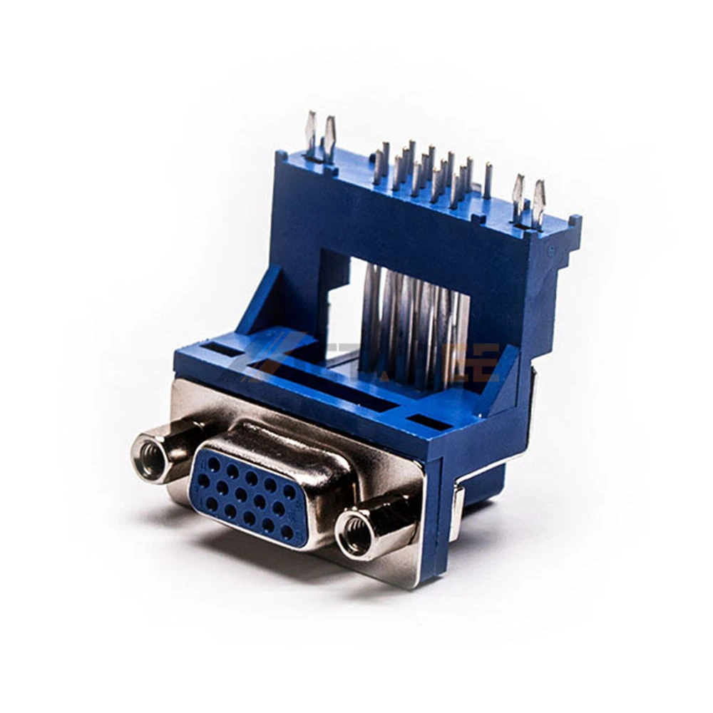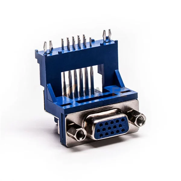 This right-angle high-density D-Sub 15-pin female connector delivers maximum connectivity in minimal space. Engineered with a precision 2.29mm pitch. This compact spacing enables high-density signal transmission. Features 15 female signal contacts arranged efficiently in 3 rows. Designed for panel mounting with a long bracket for secure PCB integration via through-hole soldering. The front screw lock ensures vibration-proof mating security. Contacts utilize stamped brass construction. Finished with nickel underplate. Its nickel-plated steel shell provides rugged corrosion resistance. Operates in temperatures from -25°C to +125°C. Rated for 250V and 5A current capacity. Ideal for space-constrained VGA and industrial applications demanding reliable high-density interconnects.