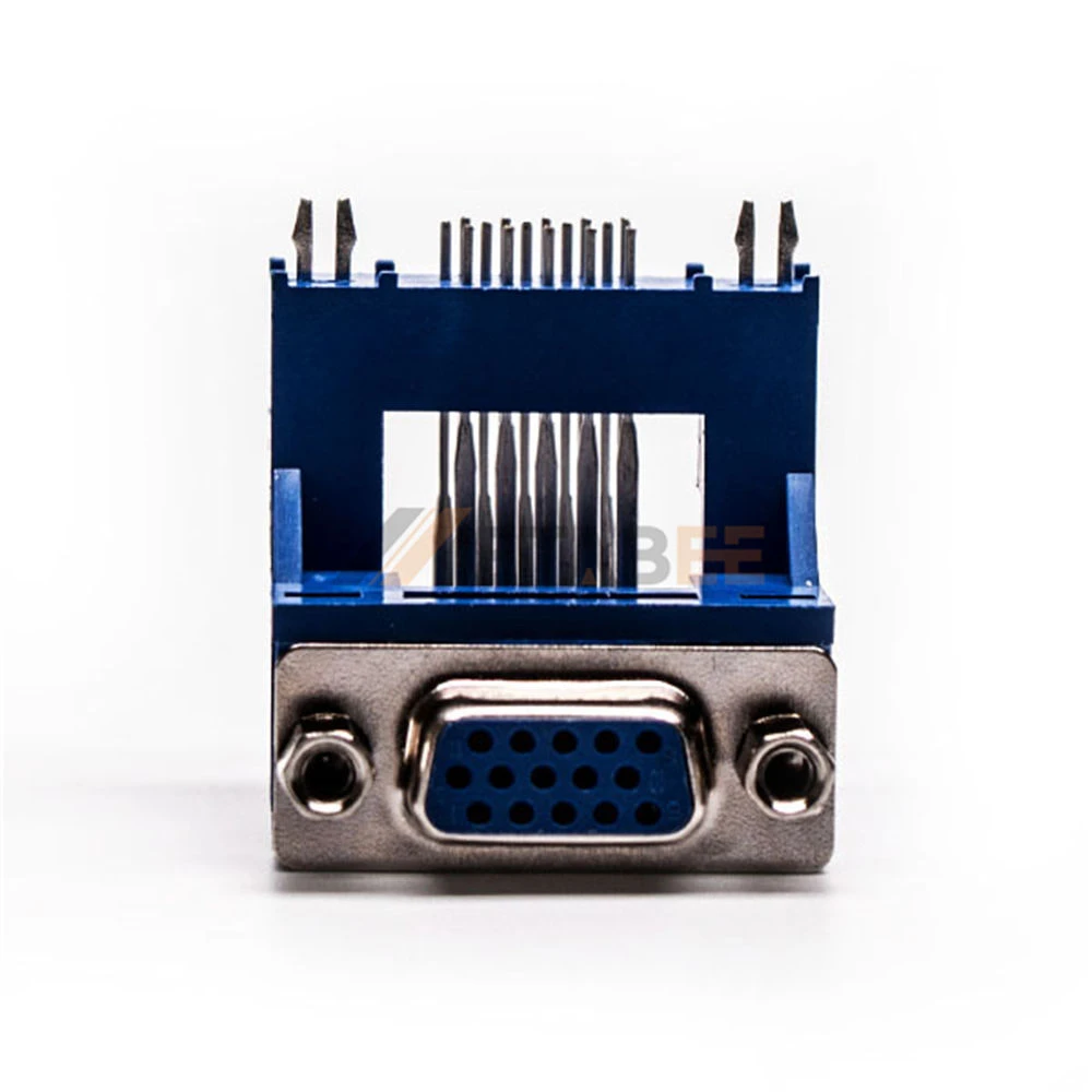 D-Sub High Density DB15 Female Connector for PCB Mount, Right Angle, 2.29mm Pitch, Long Bracket, Front Screw Lock