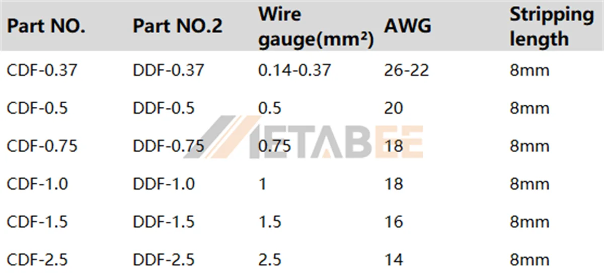| Wire Gauge: | 0.14-0.37 mm² (AWG 26-22) | |