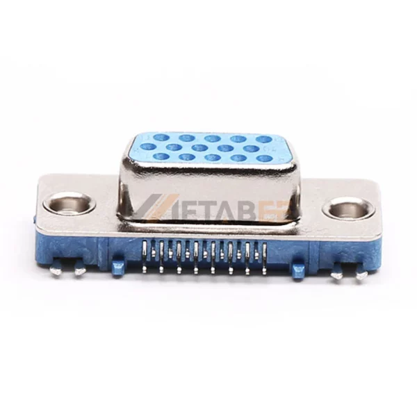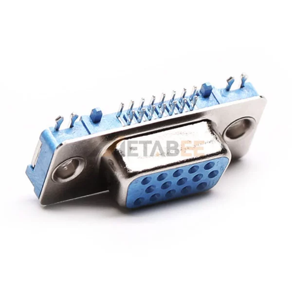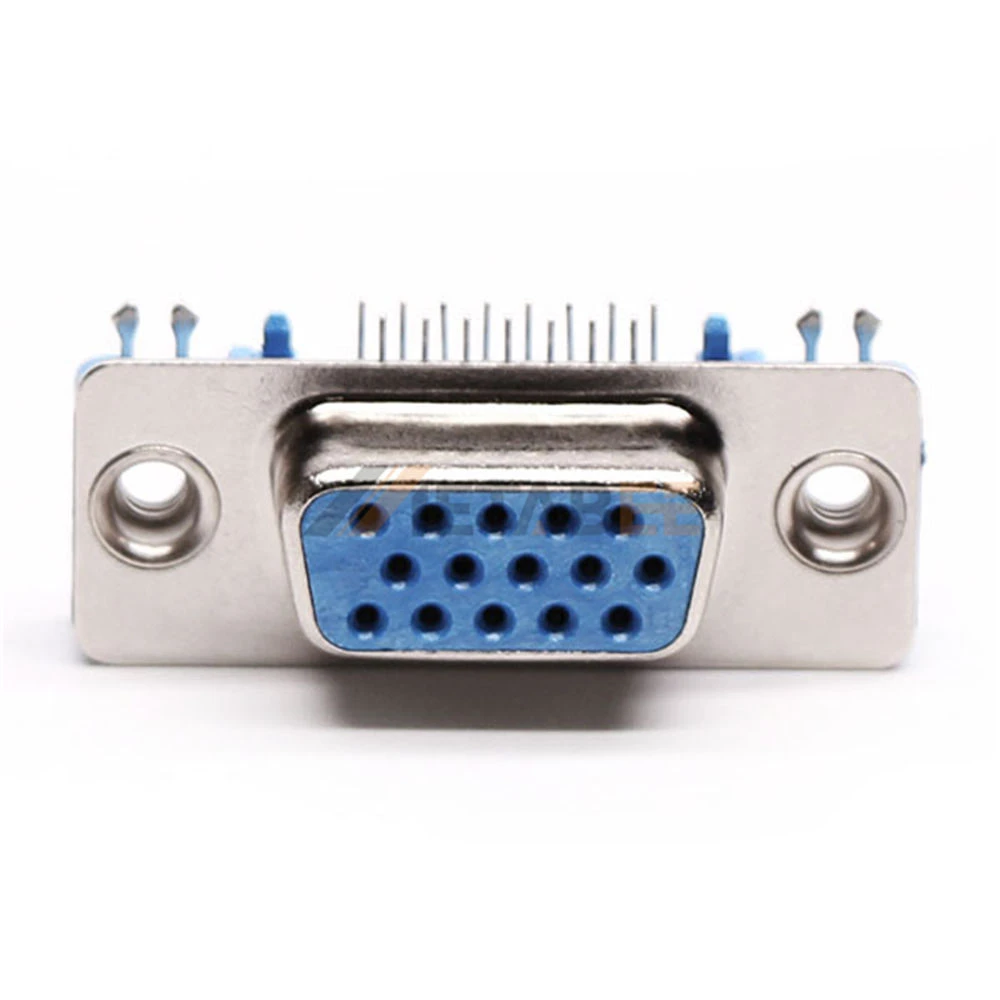 This right-angle high-density D-Sub 15-pin female connector delivers maximum connectivity in minimal space. Engineered with a precision 2.29mm pitch. This compact spacing enables high-density signal transmission. Features 15 female signal contacts arranged efficiently in 3 rows. Its compact E-size shell defines the high-density standard. Designed for panel-mount PCB integration via through-hole soldering. The rear rivet nut ensures vibration-proof mating security. Contacts utilize stamped brass construction. Finished with nickel underplate. Its nickel-plated steel shell provides rugged corrosion resistance. Operates in temperatures from -25°C to +125°C. Rated for 250V and 5A current capacity. Ideal for space-constrained VGA and industrial applications demanding reliable high-density interconnects.