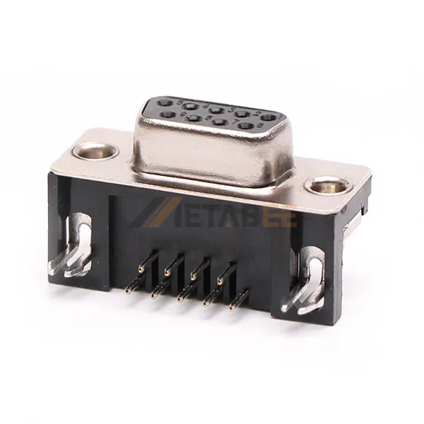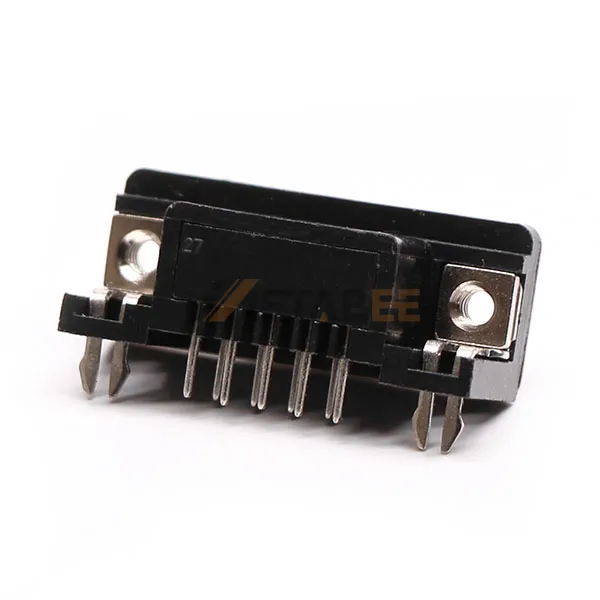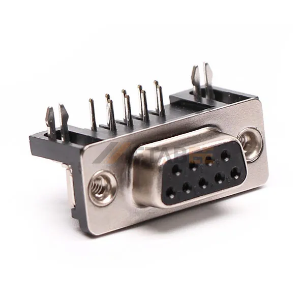 This DB9 female right angle connector is engineered for secure PCB mounting. It features integrated 4-40 UNC screw locks, ensuring a vibration-proof mating connection. Its right-angle profile is ideal for space-constrained layouts. The connector mounts using through-hole technology; its solder pins are inserted into the PCB and soldered to form a robust, permanent mechanical and electrical bond. This connector features tin-plated contacts, providing an economical solution for reliable data connections.