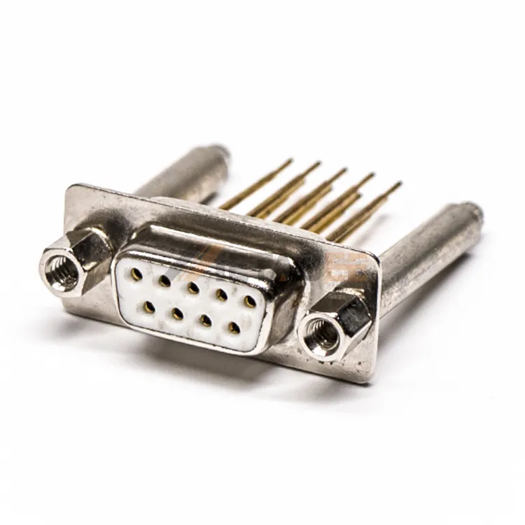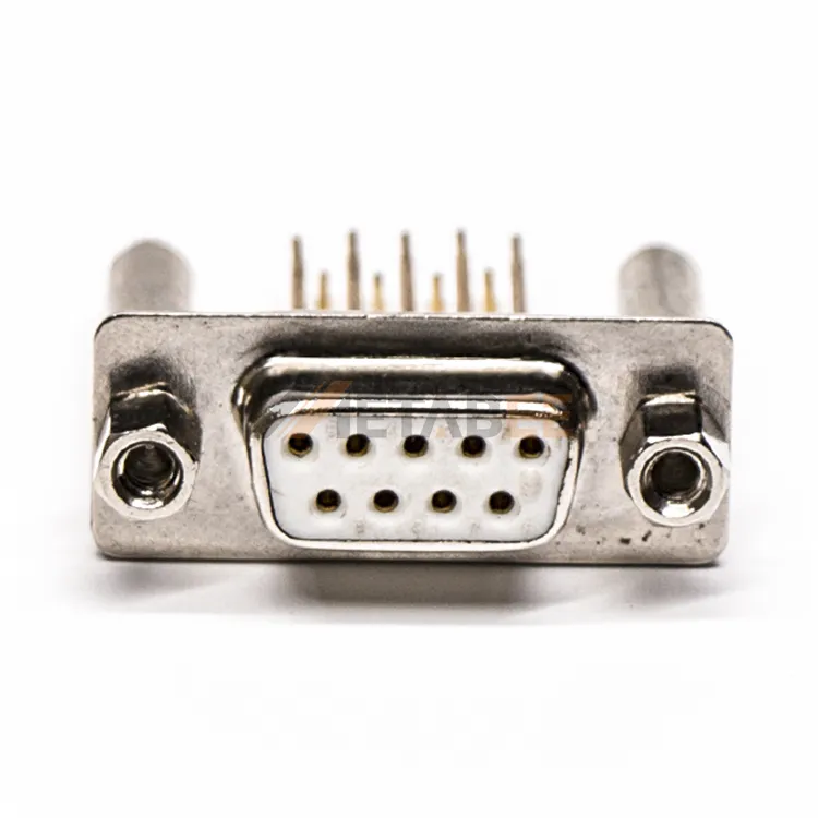DB9 Straight Female Connector with Gold-Plated Machined Pin, PCB Mount, Through Hole, 2.77mm Pitch, Screw Lock