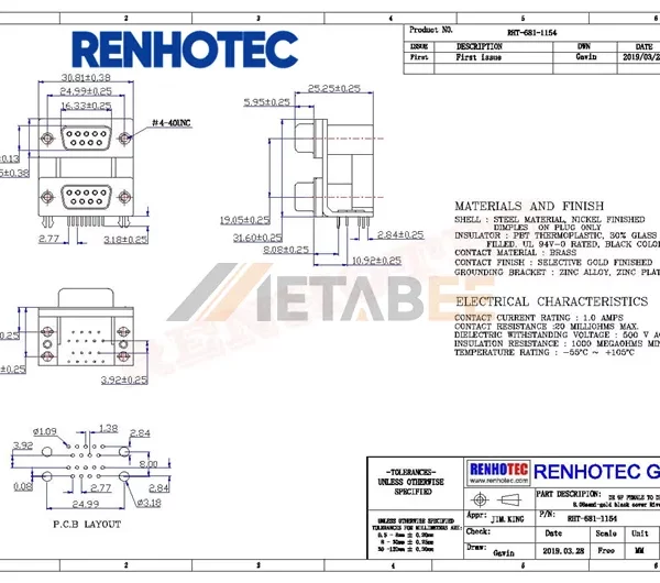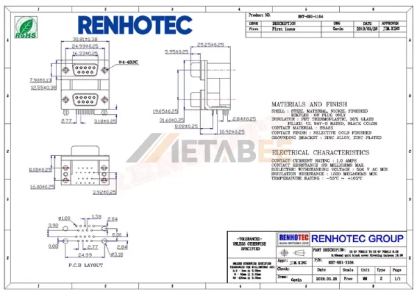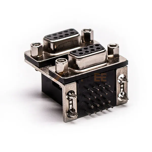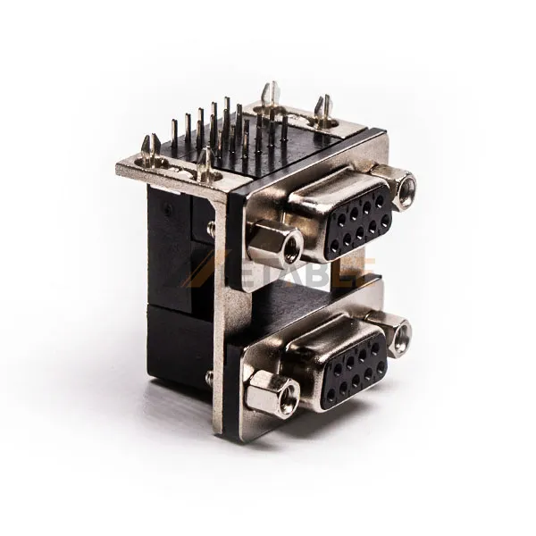 This stacked D-sub 9 pin female connector vertically integrates two 90-degree angled connectors, maximizing the use of limited PCB space and enabling multiple connector interfaces. Constructed of high-temperature-resistant thermoplastic and meeting the UL94 V-0 flame retardant standard, the connector ensures high reliability and safety in a variety of industrial applications. This connector features affordable stamped terminals. This model features dual 9-pin female headers, secure through-hole mounting, and optional mounting hardware to accommodate diverse panel mounting requirements.