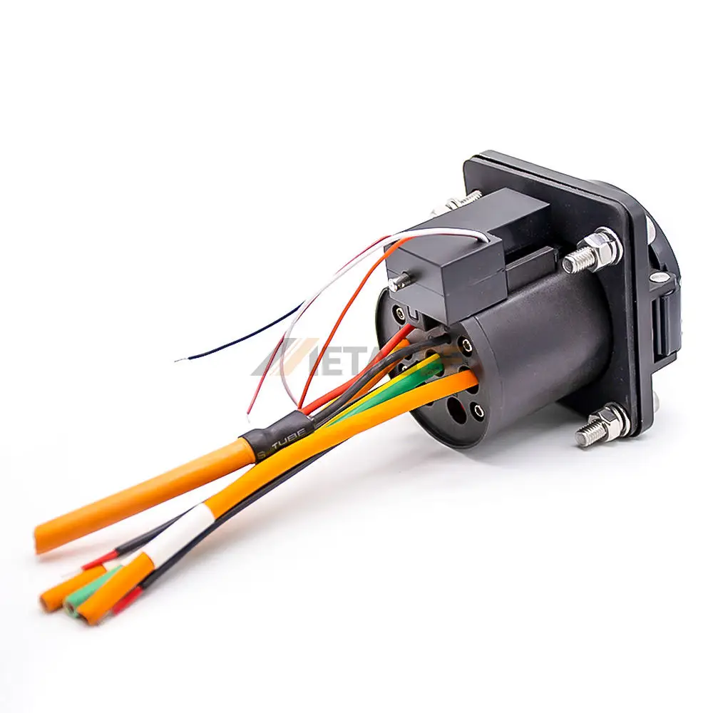 Constructed from high-quality materials, the connector features a durable thermoplastic housing and silver-plated copper alloy contacts, guaranteeing excellent conductivity and longevity. It supports a rated voltage of 440V and a current of 32A, enabling a maximum charging power of up to 14kW for faster charging times. With an IP65 rating for dust and water resistance and a top-tier UL94V-0 flame retardant rating, this connector is built for safety and reliability in all conditions. Its ability to operate in temperatures ranging from -30°C to 50°C ensures dependable performance year-round.